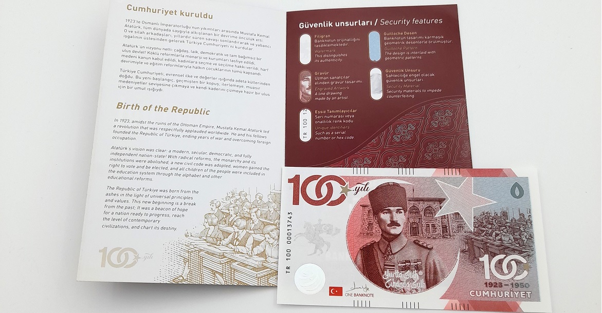 Koleksiyon, tarih severler, nümizmatlar, koleksiyonerler, ile Cumhuriyet'in 100. yılına özel orijinal ve prestijli bir hediye arayanlar için mükemmel bir seçenek olacak şekilde tasarlandı. Sınırlı sayıda basılan banknotların her biri, eşsiz bir seri numarasına sahip. Banknotlar, Avrupa Birliği'nin para basımı için çalıştığı, dünyanın en yüksek kaliteli banknot üretimi yapan darphanelerinden biri olan Royal Joh.Enschedé tarafından basıldı. Gerçek banknotlarda bulunan tüm güvenlik özelliklerine ve kalite seviyesine sahip bu banknotlar, filigran, tifdruk, gravür, gizli UV desenleri ve mor ışıkla aktive olan desenler barındırıyor. Böylece, ele alındığında yeni basılmış gerçek para hissiyatını almak mümkün olabiliyor.