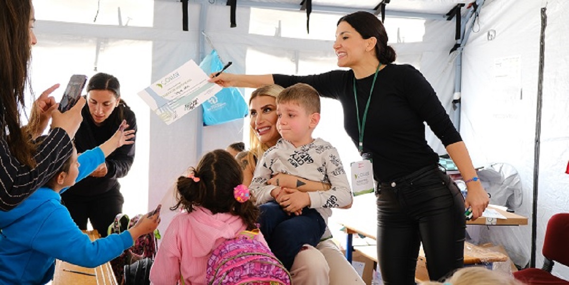 Yonca Evcimik, İrem Derici, Atakan Işıktutan ve Özgür Aras, depremden kurtulan çocuklara sanatla terapi etkinliği için Hatay'a gitti.