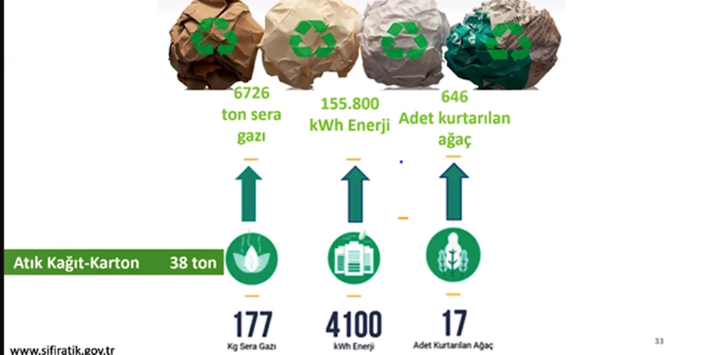 Toplanan atıklar sayesinde ulaşılan kazanımlar hakkında da bilgi veren EHKİB Başkanı Sertbaş sözlerini şöyle sürdürdü: “12 firmamızın döngüsel ekonomiyi öncelikli hale getirmeleri sonrasında 646 ağaç kesilmekten kurtarılırken, 7 bin 259 ton sera gazı salınımının önüne geçildi, 142 ton su tasarrufu ve 230 bin 862 kWh enerji tasarrufu sağlandı. 2021 yılında firmalarımız atıklarını lisanslı firmalara vererek yılda ortalama 45.000 TL ve 80.000 TL arası kazanç sağladı.”