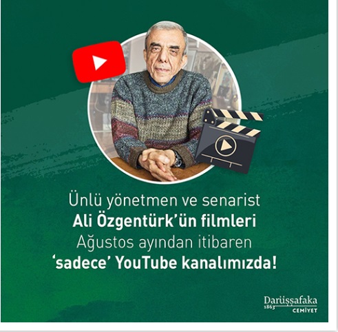 2019 yılında yaptığı anlamlı bağışla, toplam 100’e yakın eserin tüm telif haklarını Darüşşafaka Cemiyeti’ne bağışlayan Ali Özgentürk’ün yapımcılığını ve yönetmenliğini üstlendiği 9 film, ağustos ayından kasım ayının sonuna dek Darüşşafaka Cemiyeti’nin YouTube sayfasında yayımlanacak. Darüşşafaka Cemiyeti, www.youtube.com/user/darussafaka1 adresi üzerinden izlenebilecek filmlerin görüntülenme sayısına göre ilave bir gelirin sahibi olacak. Söz konusu kaynak Darüşşafaka’da eğitimlerine devam eden 1.000’e yakın öğrencinin ihtiyaçları için kullanılacak. Ağustos ayı itibariyle sanatseverlerle buluşacak filmler şöyle:
