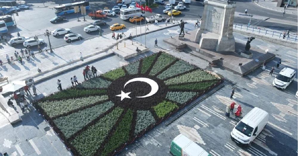 Ulus Atatürk Heykeli çevresinde 310 metrekarelik bir alanda Beypazarı serasında yetiştirilen 9 bin 500 saksılı bitki ile peyzaj çalışması yapıldı. Bitkilerin merkez noktasına yerleştirilen ve led aydınlatma ile donatılan 9 metrekarelik ay-yıldız, Ulus’un kalbinde görsel bir şölen yaşatıyor.