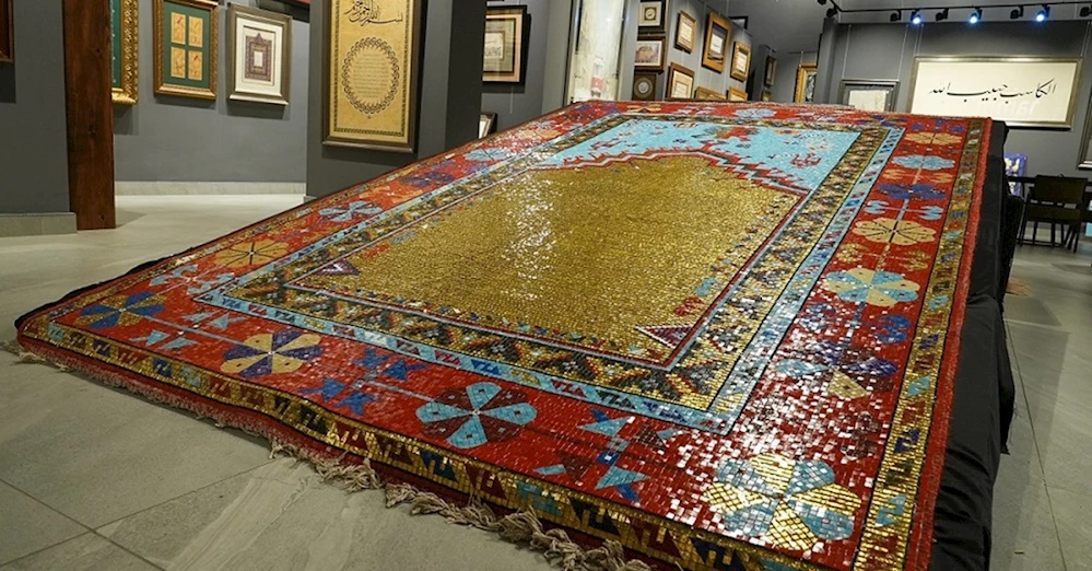 Seccadenin tasarımcısı Aysel Ergül yaptığı açıklamada “Seccademiz kullanılan teknik ve verilen emek açısından çok özel bir eser. Normalde seccade, kumaş dokuma ile yapılır; ancak biz bu seccadeyi cam mozaik ile yaptık. Yüzde 50’den fazlası altın olmak üzere 80 binin üzerinde parça, tek tek yapıştırılarak büyük bir emek ile yapıldı. Yurt dışında da halı şeklinde yapılmış mozaikler var; fakat onlar tamamen zemine döşemeli oluyor. Bu, hareketli bir obje; duvara da asabilirsiniz, katlayabilirsiniz, kıvırabilirsiniz de.”dedi. Ergül, sözlerine şöyle devam etti: