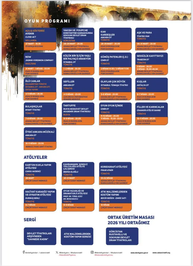 Sabancı Vakfı ile Kültür ve Turizm Bakanlığı Devlet Tiyatroları iş birliğiyle düzenlenen Devlet Tiyatroları - Sabancı Uluslararası Adana Tiyatro Festivali, Dünya Tiyatro Günü’nde 25’inci kez perdelerini açmaya hazırlanıyor.