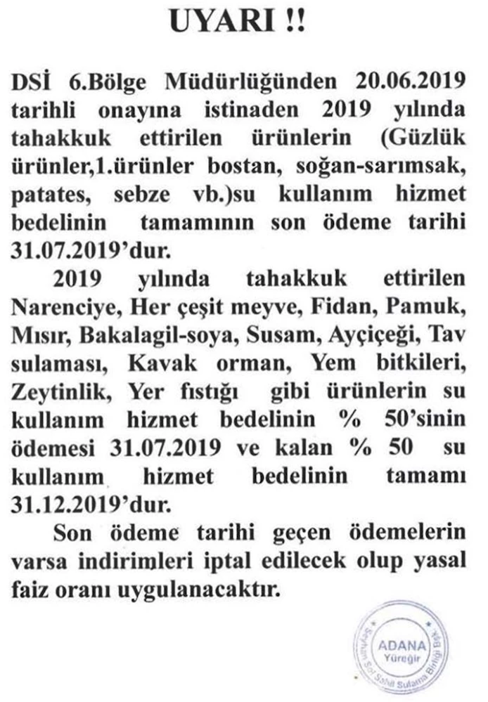Üretim sezonunun ortasında DSİ onayıyla alınan karara ve çiftçilere yapılan uyarıya sert tepki gösteren CHP Adana Milletvekili, TBMM Tarım, Orman ve Köyişleri Komisyonu Üyesi Ayhan Barut, söz konusu kararın kabul edilemez olduğunu vurguladı. Çiftçilerin sürekli yükselen maliyetler altında ezildiğini, ürünlerin para etmediğini ancak tüm olumsuzluklara karşın üretmeye çalıştığını anımsatan Ayhan Barut, 'Sezonun tam ortasında DSİ onayıyla alınan bu karar çiftçiye vurulan bir darbedir. Çiftçimizin parasal açıdan en zayıf olduğu dönemde, sulama parasının yarısını ve tamamını tahsil etme kararını kim kabul edebilir? Üreticinin yükünün hafifletileceği yerde, maliyetlerin düşürülmesini, ürünlerin para etmesini, ekonomik krize çözüm bulunmasını isterken Sulama Birlikleri'nin aldığı karara nasıl tepki göstermeyelim. Tarımsal üretimi ve üreticiyi bitirenler, tarımdaki bu yangına da çözüm bulmuyor. Neredeyse tamamı kredi ve borçla üretim yapan, ürünü para etmeyen çiftçilere bir nefes verilmelidir. Mısır, ayçiçeği, narenciye hasat edilmeden sulama parası istenmesi canımızı yakıyor. Bu yanlış karar acilen düzeltilmeli. Tarım ve Orman Bakanlığı'nı, DSİ yetkililerini bu yanlışa müdahale etmeye, görevlerini yapmaya çağırıyoruz.'