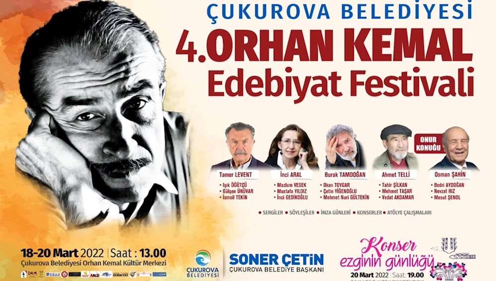 Çukurova Belediyesi tarafından iki yıldır pandemi nedeniyle yapılamayan Orhan Kemal Edebiyat Festivali 18 Mart’ta başlayacak.