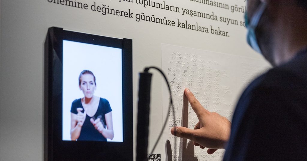 Sabancı Vakfı’nın Fark Yaratanlar Programı’na seçilen sosyal girişimlerden biri olan Erişilebilir Her Şey işbirliği ve Sabancı Vakfı desteğiyle hayat bulan erişilebilir sergide görme ve işitme engelli bireyler için tüm bilgi panoları işaret diline çevrildi; video, yerleştirme ve görseller için sesli betimleme kayıtları gerçekleştirdi. Bu kapsamda aynı zamanda sergi alanı ve rotasının sesli betimlemeleri de hazırlandı ve ziyaretçilerin QR kodu kullanarak ulaşabilecekleri tüm içeriklerle sergi erişebilir bir niteliğe kavuştu.