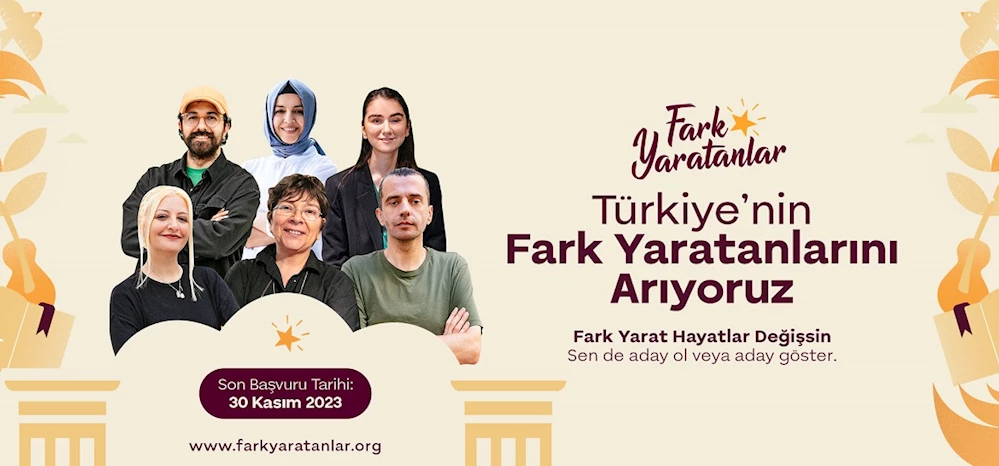 Sabancı Vakfı’nın 2009 yılından bu yana, Türkiye’de toplumsal gelişmeye katkıda bulunan bireylerin ve kurumların yaptıkları çalışmalarla yarattıkları etkileri görünür kılmak ve topluma ilham vermek amacıyla yürüttüğü “Fark Yaratanlar” programının 15. Sezon başvuruları sürüyor. Yeni dönemdeki Fark Yaratanlarını arayan programın başvuruları, 30 Kasım 2023 gün sonuna kadar www.farkyaratanlar.org adresi üzerinden gerçekleşiyor.