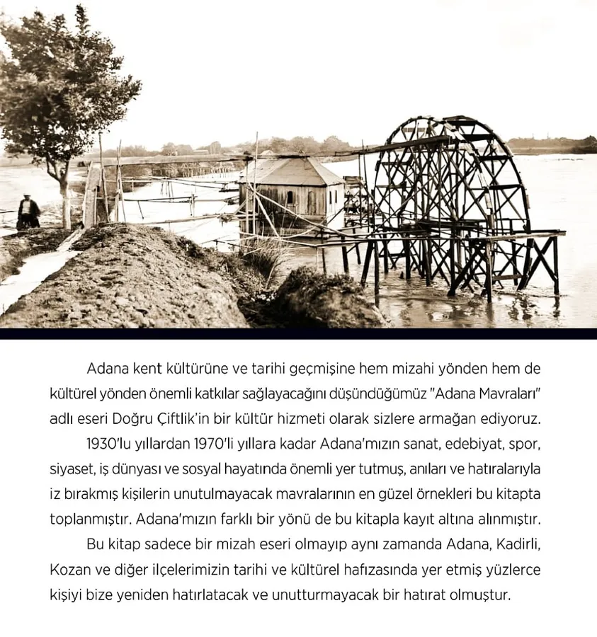Bu kitap sadece bir mizah eseri olmayıp aynı zamanda kentin hafızasında yer etmiş yüzlerce kişiyi bize yeniden hatırlatacak ve unutturmayacaktır. Tarihi fotoğraflar ve mizahın en güzel hali ile gelecek nesillere aktarılacak bir Adana hatıratı olmuştur.
